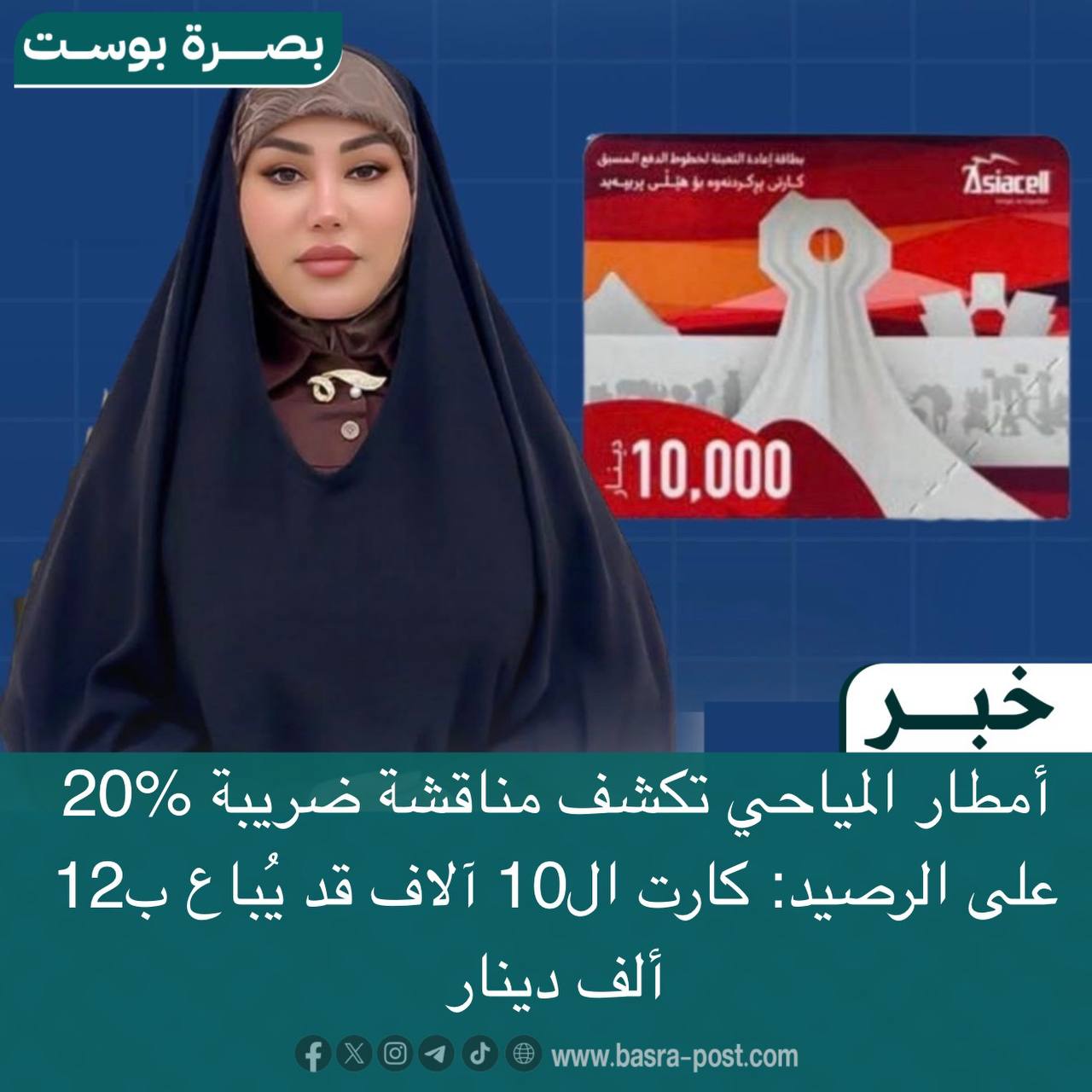 #وكالة_بصره_بوست_الأعلامية كشفت نائب رئيس مجلس مفوضي هيئة الإعلام والاتصالات، أمطار المياحي، عن عقد الهيئة اجتماعاً اليوم، لمناقشة رغبة مجلس الوزراء بفرض ضريبة على كارتات الشحن (الرصيد) للهاتف النقال بنسبة تقارب 20%، ما يعني أن كارت فئة 10 آلاف دينار سيباع بـ12 ألف دينار. وأكدت المياحي أنه سيُعرض قريباً أن ليس من شأن الهيئة فرض زيادة على سعر كارت الشحن على الشركات، كون المواطن هو من سيدفع هذا المبلغ الإضافي، متسائلة ما ذنب المواطن بذلك، لافتة إلى أن سياسة الدولة في هذه الأيام تتجه نحو فرض الضرائب لتعويض النقص في الموازنة. وأضافت أن العقد شريعة المتعاقدين، وأن العقود المبرمة مع شركات الاتصالات (آسيا سيل وزين العراق) لا تتضمن نصاً أو فقرة تتعلق بفرض ضرائب، متسائلة عن الجهة التي ستتحمل تلك الضريبة، مؤكدة أنها في حال إقرارها ستقع على عاتق المواطن.