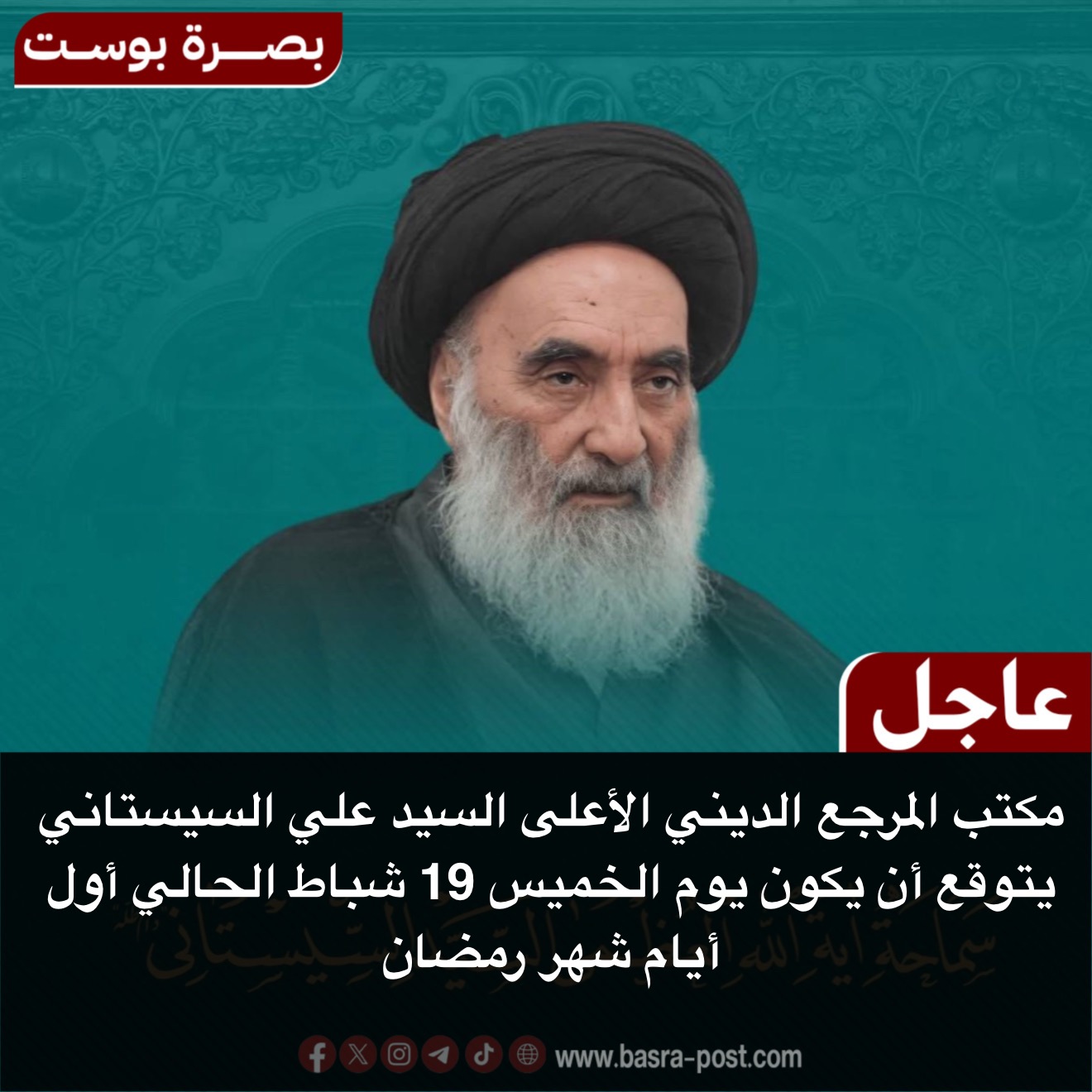 الرئيسية/ثقافة وأدب وفن/#وكالة_بصره_بوست_الأعلامية مكتب المرجع الديني الأعلى السيد علي السيستاني يتوقع أن يكون يوم الخميس 19 شباط الحالي أول أيام شهر رمضان #وكالة_بصره_بوست_الأعلامية مكتب المرجع الديني الأعلى السيد علي السيستاني يتوقع أن يكون يوم الخميس 19 شباط الحالي أول أيام شهر رمضان فيسبوك X لينكدإن Tumblr بينتيريست Reddit VKontakte Odnoklassniki Pocket فيسبوك X لينكدإن Tumblr بينتيريست Reddit VKontakte Odnoklassniki Pocket شاركها فيسبوك X لينكدإن Tumblr بينتيريست Reddit VKontakte Odnoklassniki Pocket مشاركة عبر البريد طباعة